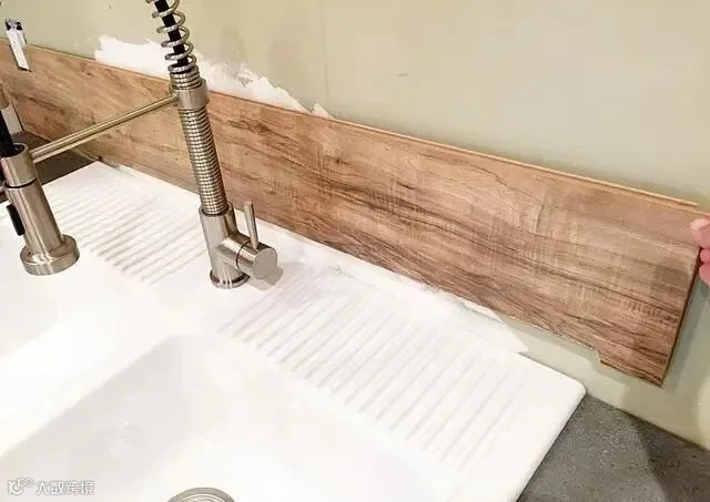 首先从水槽前开始,因为这里有水槽、插座等遮挡物,所以需要切割。