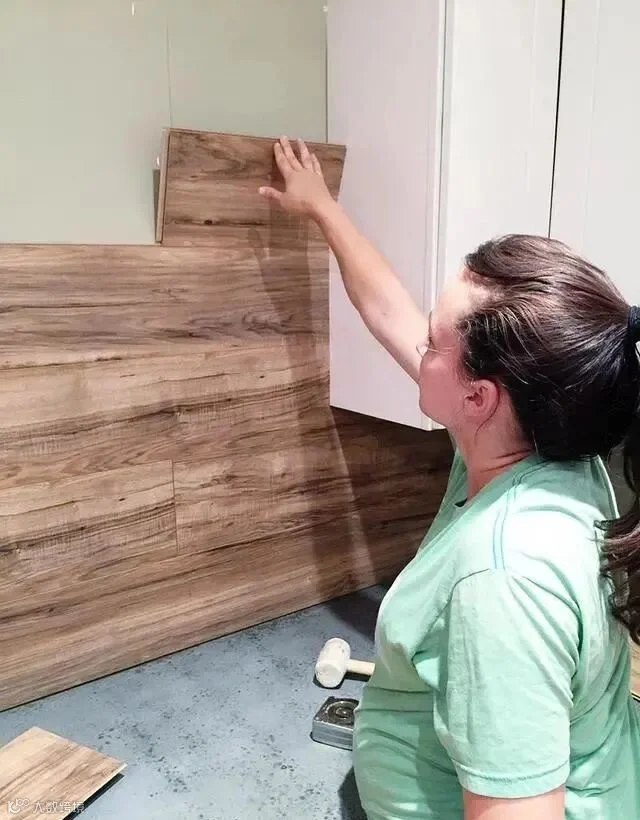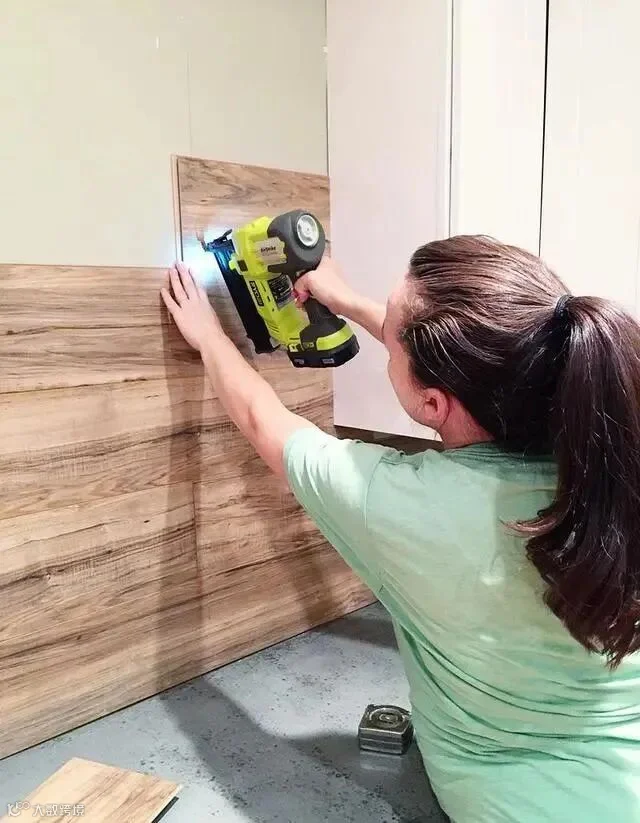 改造第一步,以木板为尺、铅笔为记号笔,在原墙面上标记出螺栓的位置:①用螺栓固定木墙板,避免松动对墙体造成损坏;②避免使用胶水,不利于健康环保。