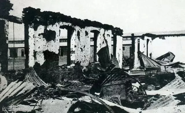 “九一八事变”当晚,被日军炮火摧毁的中国军队营房。