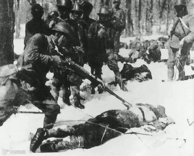 1931年9月19日凌晨,日军炮轰东北军驻地北大营3小时后,有准备的日军步兵冲进北大营。日军左胳膊以白布条为记号。