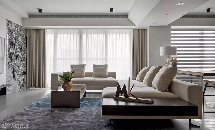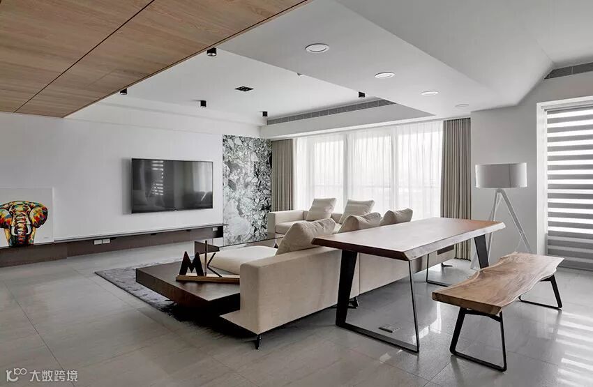 设计师透过材质、色彩、比例的不对称视觉趣味,让清雅明朗的空间增添独特性,让居家生活不会单调无感。