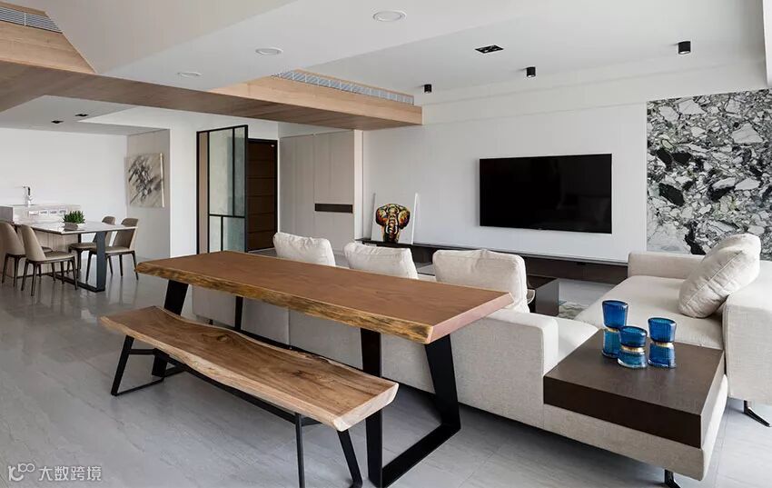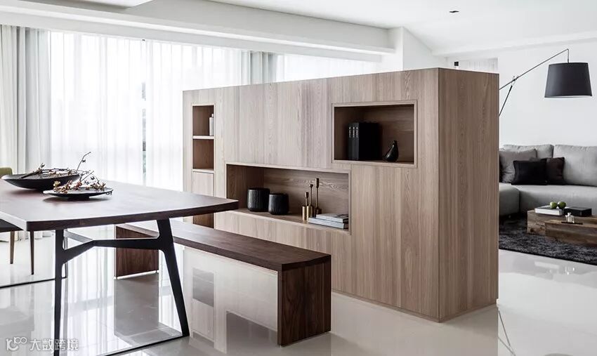 电视柜,双面,还能收纳!有这样的先例在前你还在纠结电视墙怎么设计吗?胡桃木餐桌餐椅,沉稳而优雅,在这种环境下,即使狼吞虎咽也影响不了生活的情调。