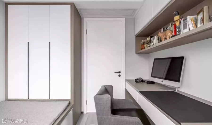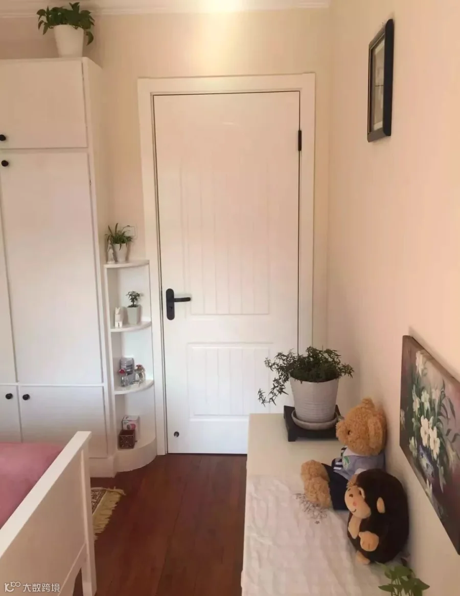 卧室的门,是家居空间里比较难以搭配选择之一,门与墙面连在一起,同时有根踢脚线、地面有交接,选择一扇精致美观的门,可以让整个空间看起来更加和谐,还能在软装点缀上,以赏心悦目的颜色与质感,给空间带来惊喜的视觉。