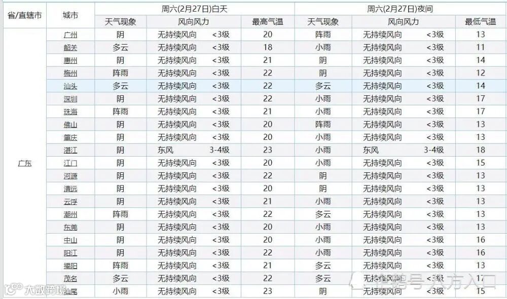 下面来关注一下,今天起三天广东各主要城市的天气情况。