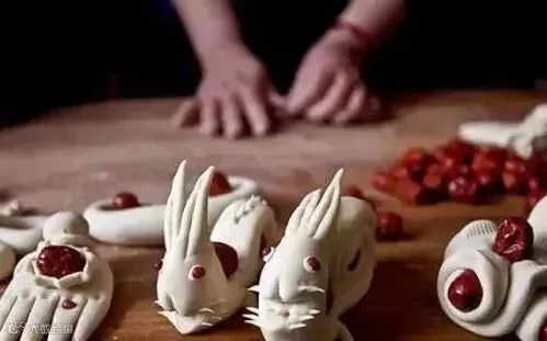 七月十五节前,民间妇女盛行面塑活动,晋北地区最烈。一家蒸花馍,四邻来帮忙。首先根据家庭实有人数(包括出嫁的女儿及女婿、外孙,另过的儿子及媳妇、孙子等等),给每个人先捏一个大花馍。送给小辈的花馍要捏成平型,称为面羊,取意羊羔吃奶双膝下跪,希望小辈不要忘记父母的养育之恩;送给老辈的花馍要捏型,称为面人,意喻儿孙满堂,福寿双全;送给平辈的花馍,要捏成鱼型,称为面鱼,意喻连年有余。