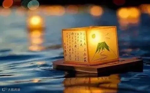 河灯也叫"荷花灯",河灯一般是在底座上放灯盏或蜡烛,中元夜放在江河湖海之中,任其漂泛。放河灯的目的,是普渡水中的落水鬼和其他孤魂野鬼。