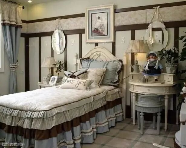 田园乡村风格是一般人对英国式家居的印象,一些花花草草的配饰,华美的家饰布及窗帘衬托出英国独特的居室风格,小碎花图案是英式乡村调子的主题。英式手工沙发线条优美、颜色秀丽,注重面布的配色及对称之美,越是浓烈的花卉图案或条纹表现就越能传达出英式风格的味道