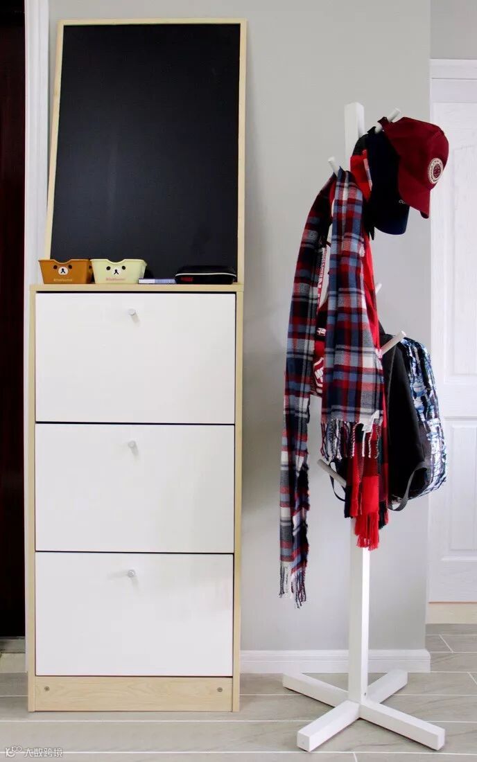 如果你家玄关比较小,或是进门没玄关,那就买个成品鞋柜靠墙放。成品鞋柜的常见尺寸宽1200 高800厚350左右。