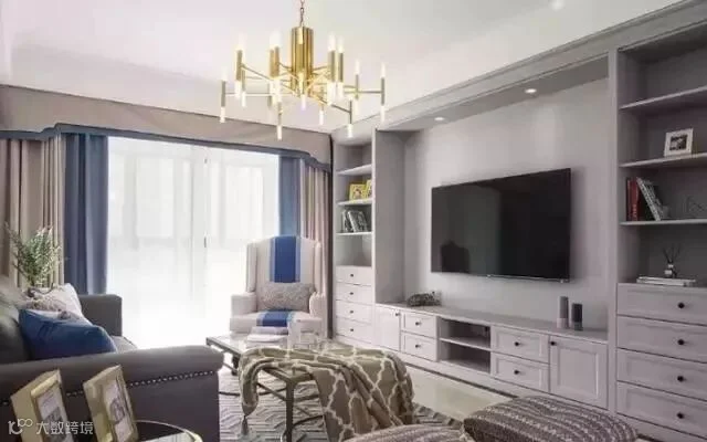 2.别再做花哨不实用的电视背景墙了,直接选用到顶的电视柜来为新家增添更多收纳空间吧。
