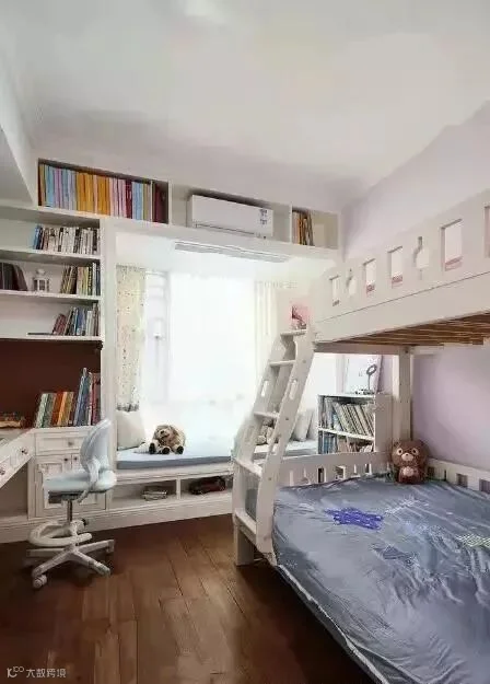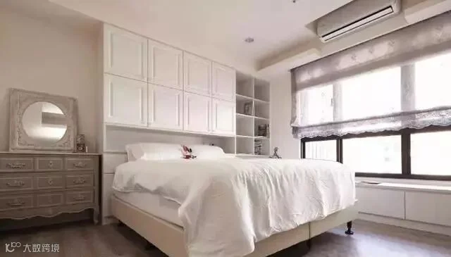 3.床头柜是卧室标配,而床柜则在床头增加一排顶柜,即使是小小儿童房,玩具衣物也都有了“藏身之处”。