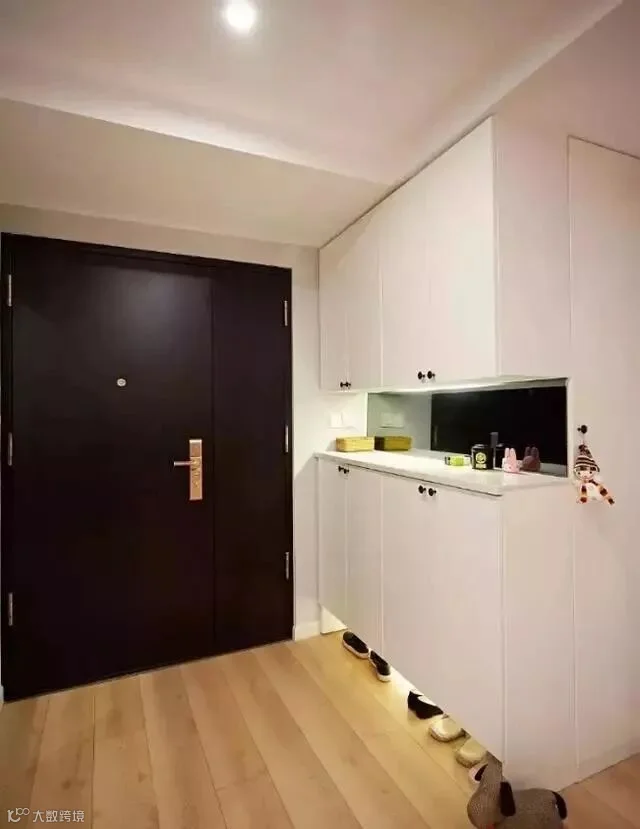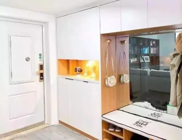 1.在玄关做到顶或嵌入式柜子,不仅能储藏鞋、衣物等,还能留出换鞋凳或随手拿取钥匙的隔间,玄关虽小,储物也能多多。