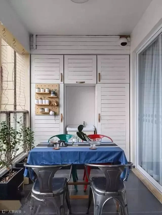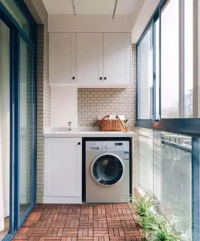 5.阳台的杂物柜也是必不可少,清洁、五金工具,就都放在这儿吧!