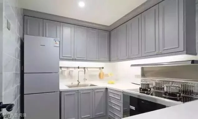 6.除了衣柜外,橱柜也是家中360度立体收纳空间,顶柜加地柜,大厨的烹饪工具和调料都在这了。