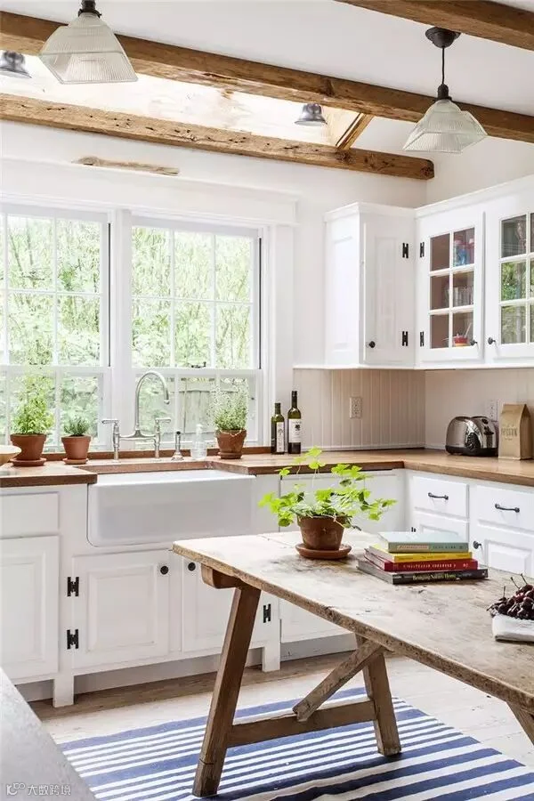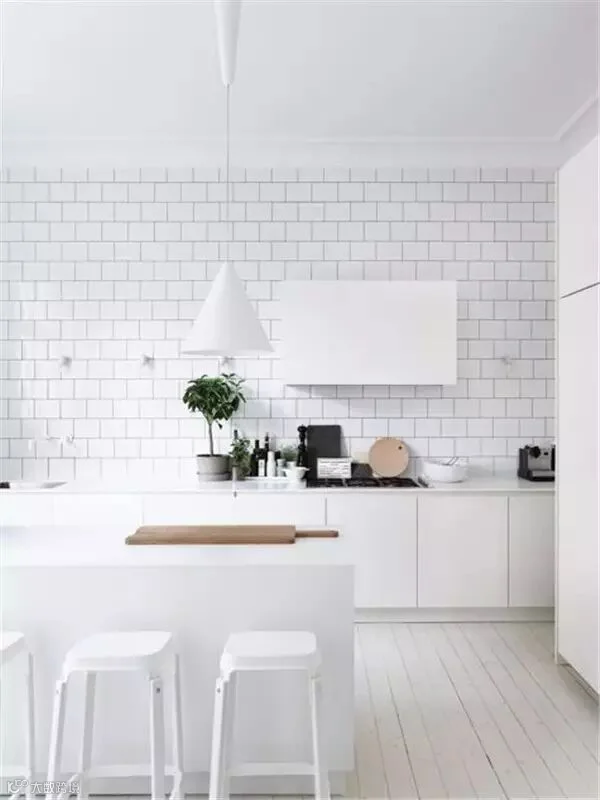 因为烹饪的关系,厨房的温度要比居室中其他房间高出许多,所以厨房更应该在外观上能够对抗夏日高温,从视觉上开始“降温”。同样,对厨房整体颜色运用平静、淡雅的颜色,更容易让人产生凉爽的感觉,通常自然色、食物色、植物色都可以让人放松心情,缓解高温引起的烦躁情绪。