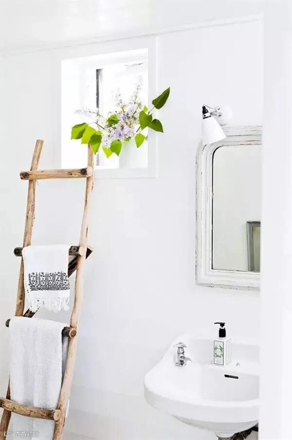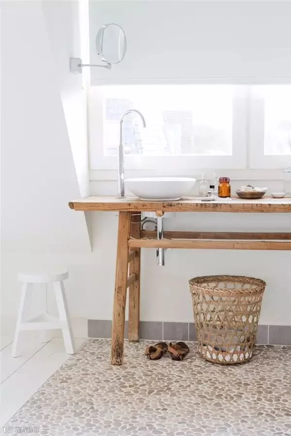 要注意情调的营造,造型独特的休闲躺椅、乡村感的藤编坐凳放入装饰简单、色调淡雅的卫浴间,非常醒目也可以很好地烘托出独特的空间气质。