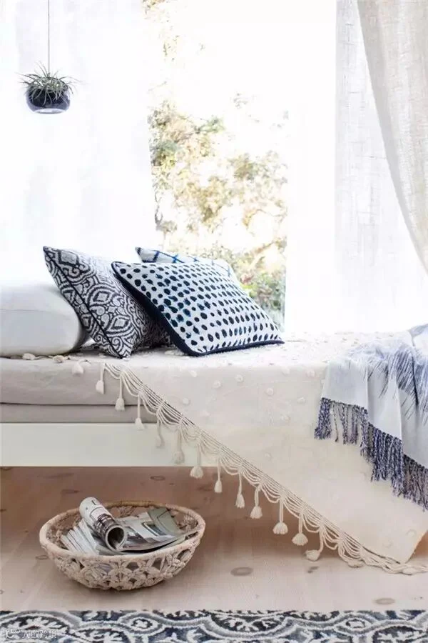 用冷色定好空间的基调后,选一些玻璃饰品装扮也能在很大程度上带给我们凉爽的感觉。除了玻璃、铁制品等可以达到清凉的作用外,自然朴实的布制艺术品也可起到简洁舒爽的作用。带着花边和刺绣花纹的布艺饰物适合放在家中的书房、阳台、卧室等各个角落,让人感觉既休闲自在,又无拘无束。