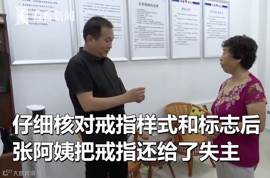 山东淄博张大妈,2015年捡到一31克的金戒指,在原地等失主半小时无果,只好先把戒指带回家。近日,在当地社区举办的晚会上,张大妈号召大家一起寻失主。消息传开,失主孙先生很快找到张大妈,并拿出买戒指的发票,张大妈说:“三年时间没白费!”
