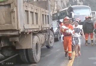 17日,北京密云突降暴雨致部分道路塌方,大批游客被困,消防员到场营救103人。一名消防员小心翼翼地抱出一名婴儿,你被暖到了吗?