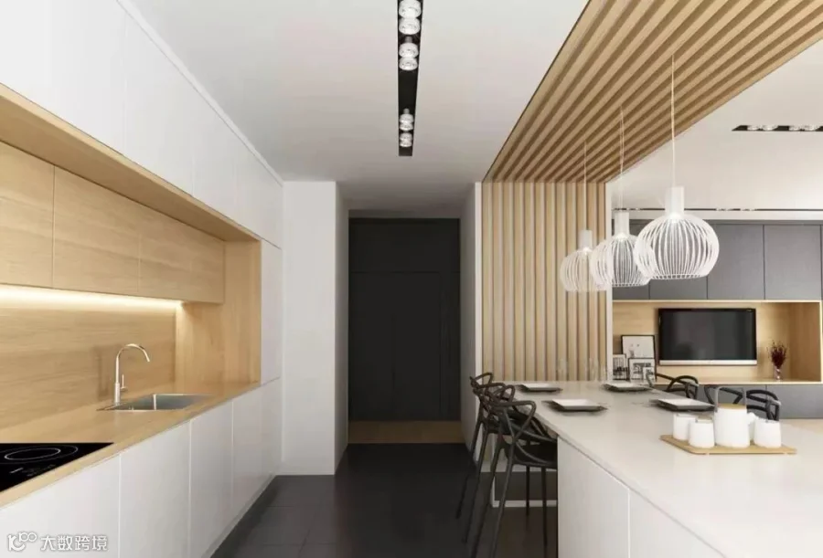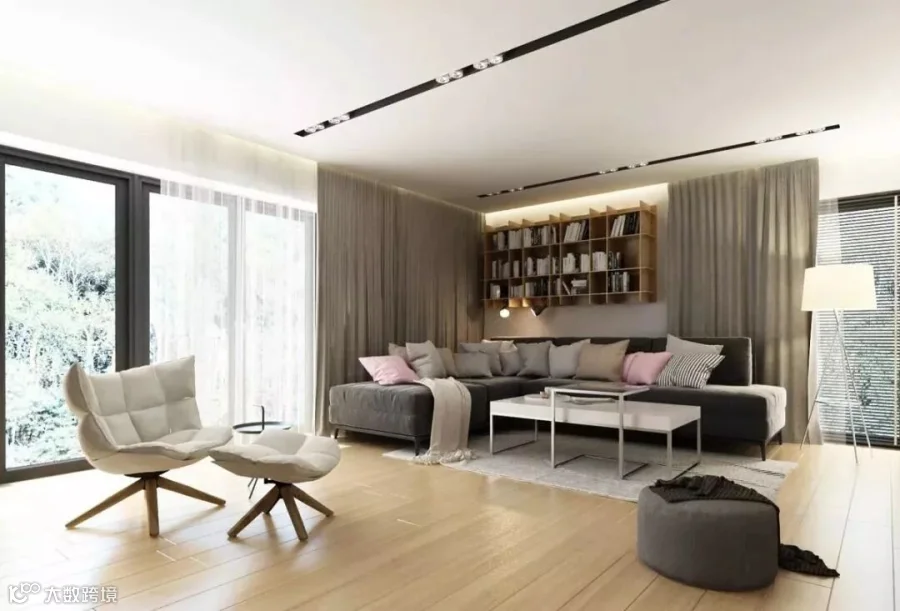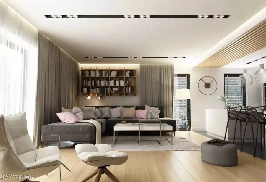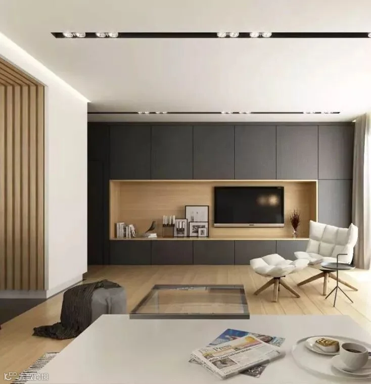 舒缓无压的现代风简约设计,为居宅留住温润静谧的流年时光 ,我们可以看到完整的木质材料的整体风采,搭配部分场景中的灰色设计,形成一个完美的搭配设计,在木色与灰色的交织中,感受自然纯粹。