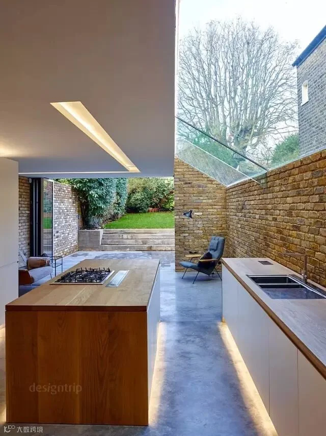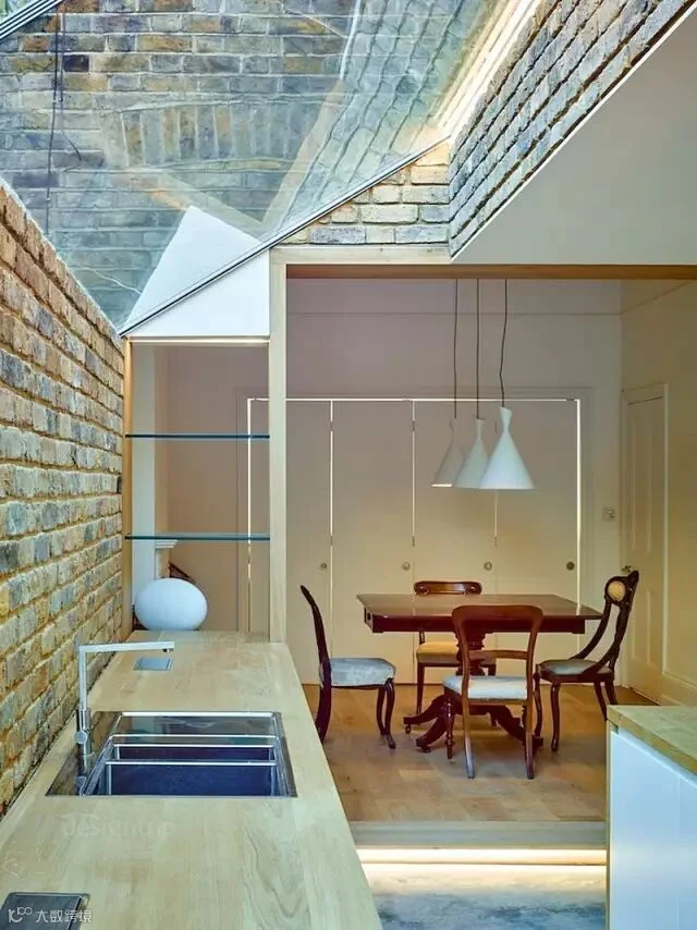 案例二,还是位于英国伦敦, 出自Coffey Architects之手。从里面到外面,都采用砖墙,但是难得的是,它依然不显得粗矿,甚至还有一股优雅之风。