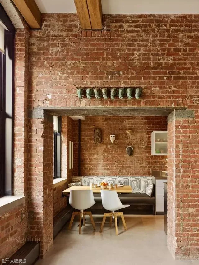 案例三,位于美国纽约。出自Robertson-Tait之手。将砖墙与原木板材相结合,呈现出来的是粗犷古朴的自然生活味道;整个家居空间搭配出了丰富的层次感。
