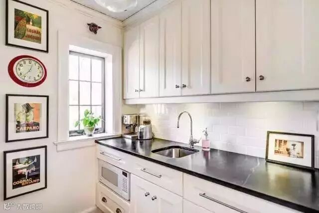 纯白可能有些单调,这个时候可以用局部亮点来点缀:餐具、台面、电器、花卉都是搭配利器。后挡板也有无限创造性,大理石,花砖、马赛克……你想得到的都可以用得上。