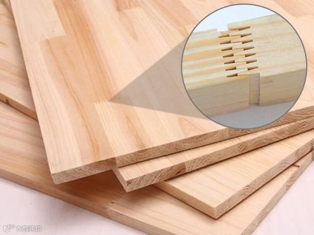 工艺:指将窄、短的木条采用胶粘剂竖向接长(常用齿型连接),由多块木板拼接而成,上下不再粘压夹板,由于竖向木板间采用锯齿状接口,类似两手手指交叉对接。