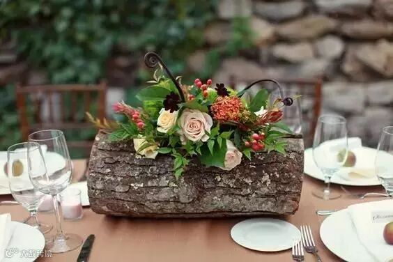 餐桌上有了这个鲜花木桩是不是觉得更加浪漫了。。