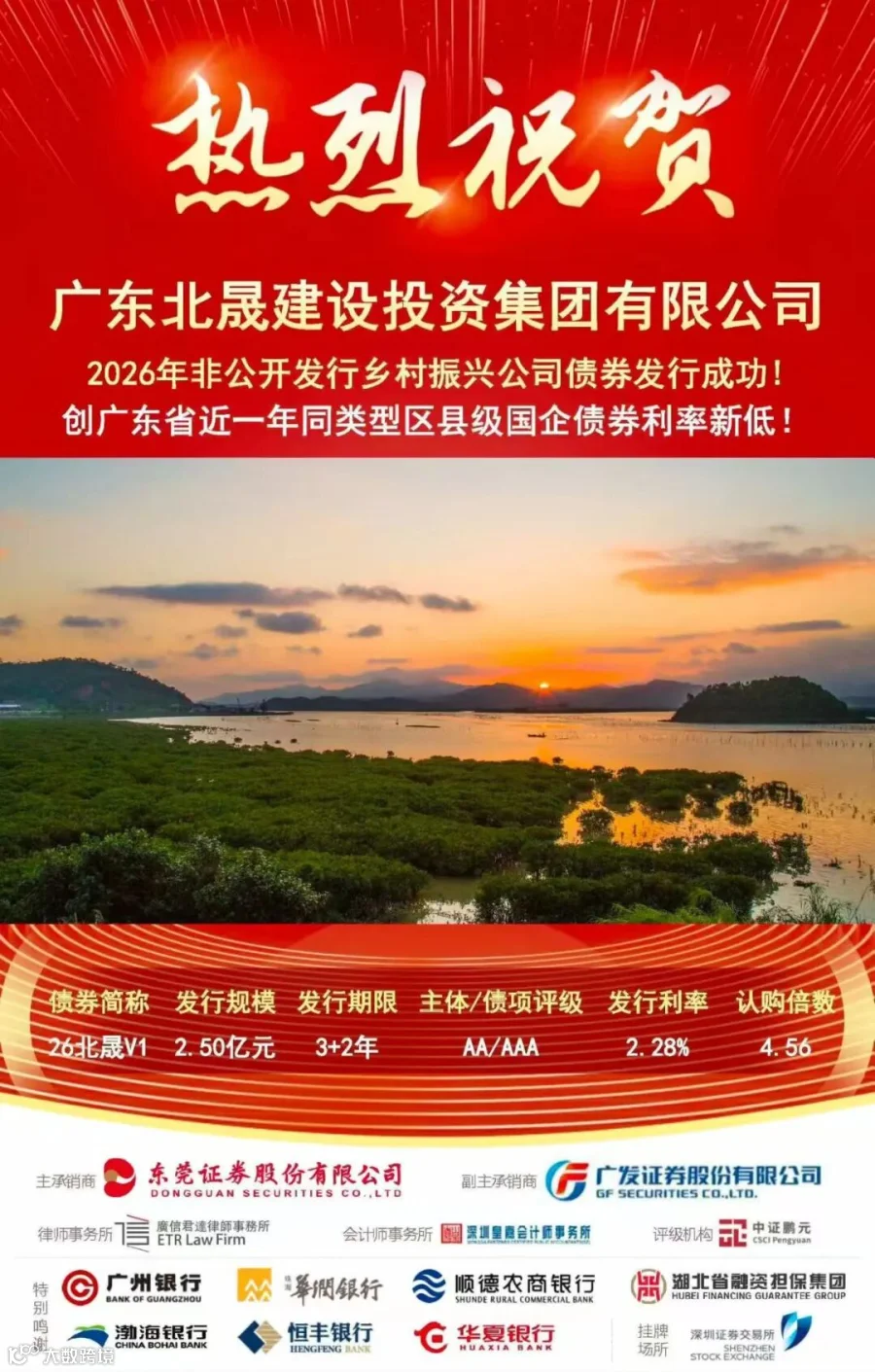 本所组建由高级合伙人张雪芳律师主导,专职律师叶永健、陈秋伶,申请律师执业人员范凯莹协同参与的项目专项工作组,助力广东北晟建设投资集团有限公司成功发行2026年非公开发行乡村振兴公司债。