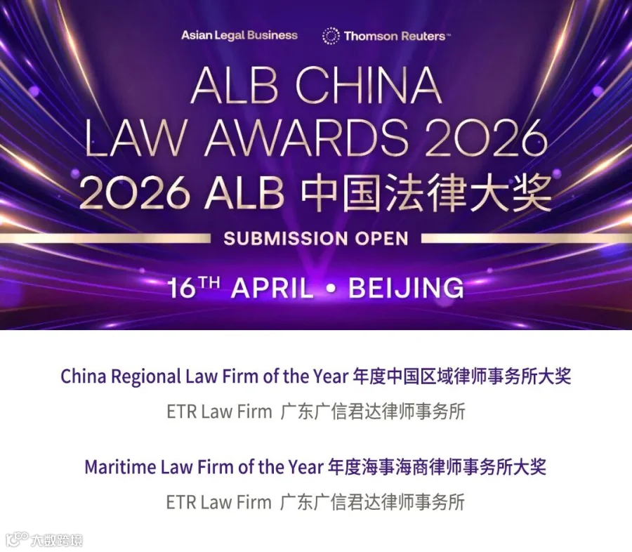 本所获得《亚洲法律杂志》(Asian Legal Business)中国法律大奖2026年度“中国区域律师事务所大奖”“海事海商律师事务所大奖”提名。