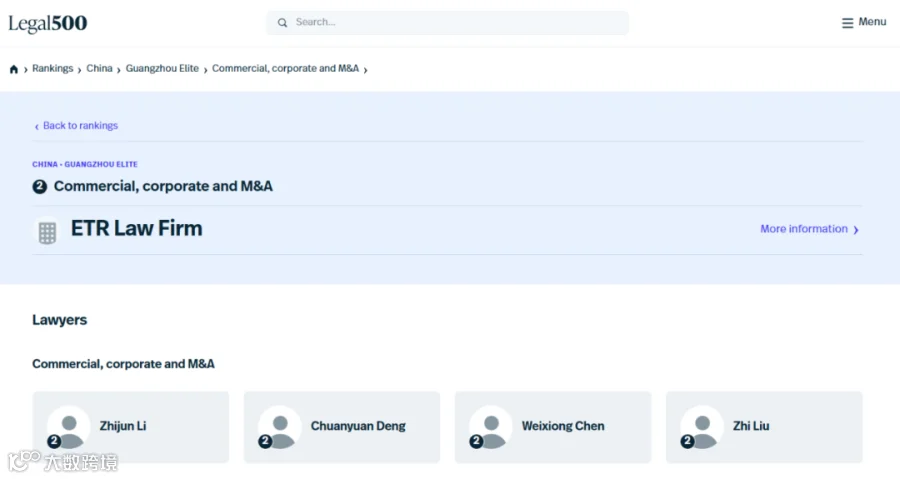 荣誉 | 广信君达4名律师荣登Legal 500 中国城市精英榜单