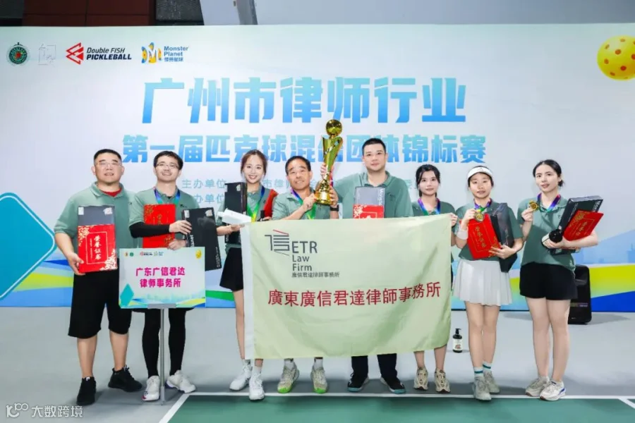 本所蔡长建、郭锦冰、樊梦莹、王毓婷、肖小俊、吴业辉、赵芃、吴晓彤、黄滔律师组成匹克球代表队,勇夺广州市律师行业首届匹克球混合团体锦标赛冠军。