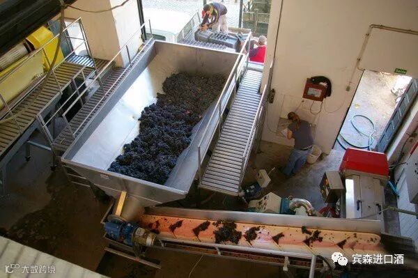 9、经过筛选后的葡萄会进入除梗机中进行去梗。去梗的时候,它们可能会被轻微压榨或者完全压榨。