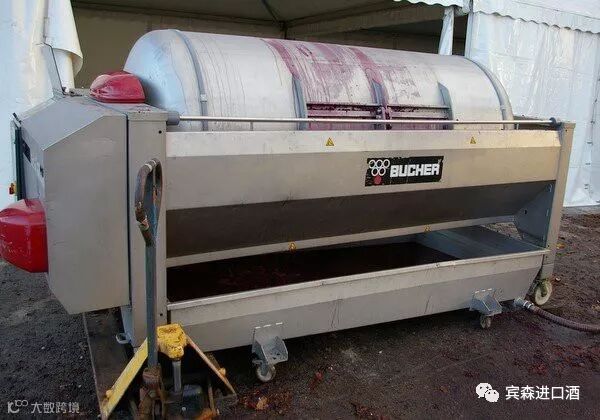 21、葡萄酒发酵完成后,剩下的皮、籽和梗会进入压缩机中进行压榨,以进一步萃取其中的精华物质。下面是一个筐式压缩机。
