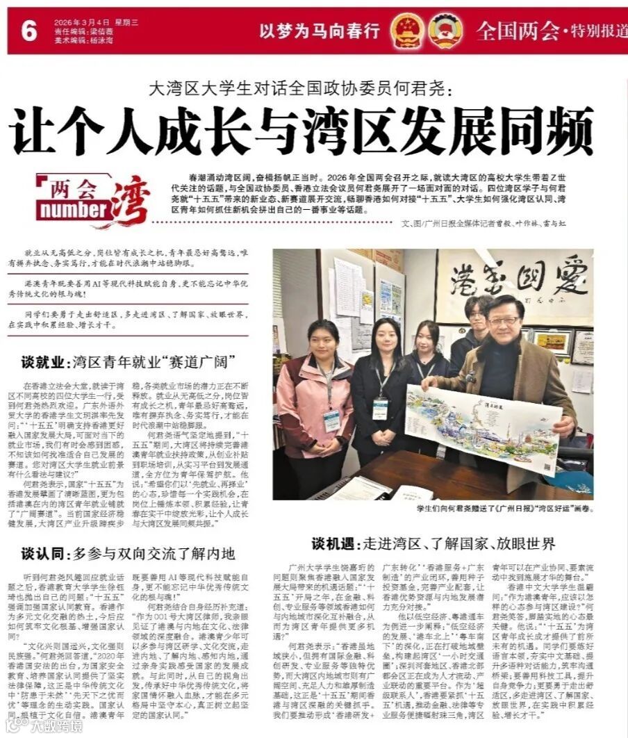 广州日报《大湾区大学生对话全国政协委员何君尧:让个人成长与湾区发展同频》