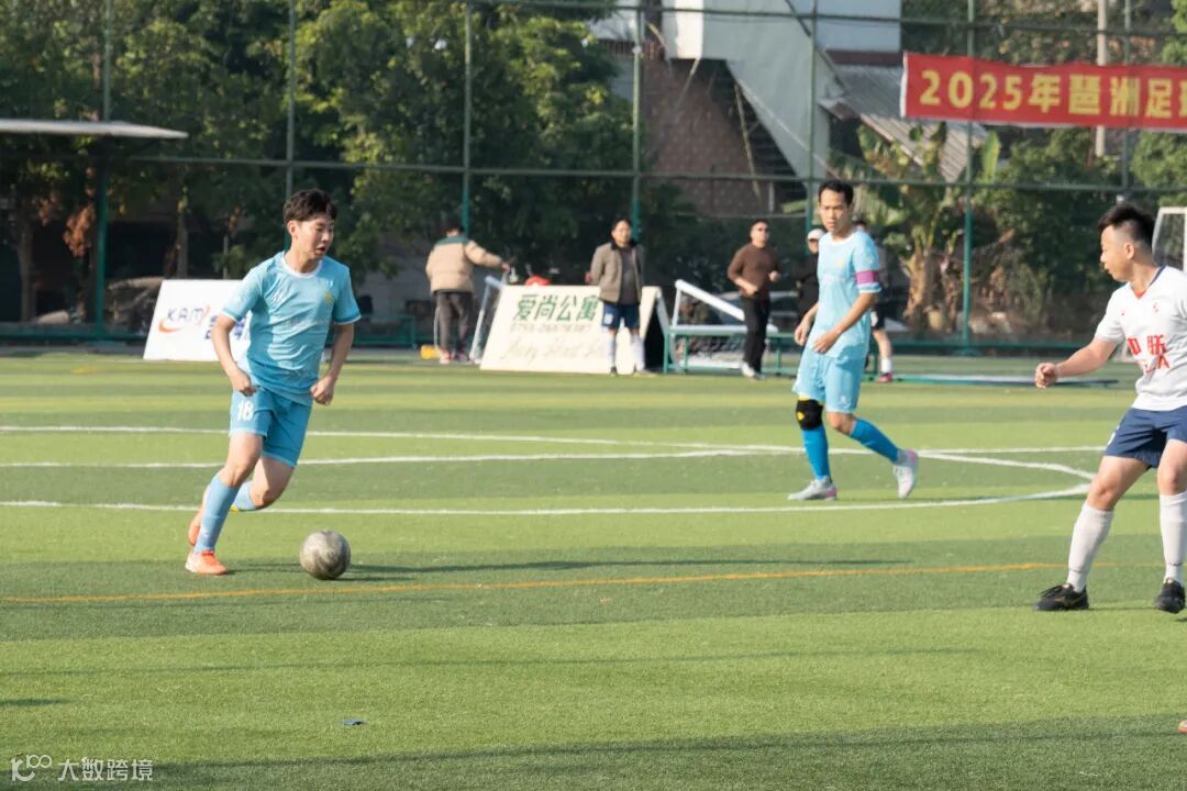 1月25日足球决赛,广信君达对阵劲旅盈科广州所。开场仅7分钟,黄滔律师在前场通过积极反抢,成功造成对方守门员犯规,赢得关键点球。他顶住压力,亲自操刀一蹴而就,帮助球队赢得1:0的梦幻开局。领先后的球队并未松懈,继续通过流畅传导控制局面。随后,韩世宸律师送出一记精妙助攻,黄滔律师心领神会,突入禁区后冷静推射破门,上半场2:0领先。