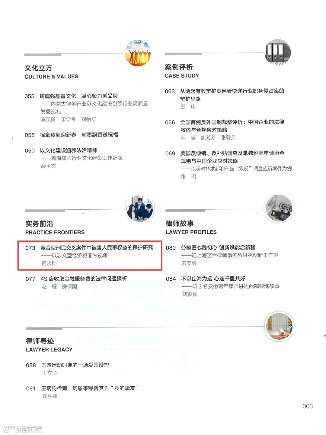 近日,广信君达律师事务所合伙人何永韬律师撰写的文章《竞合型刑民交叉案件中被害人民事权益的保护研究——以涉众型经济犯罪为视角》,刊发于《中国律师》杂志2026年第2期。