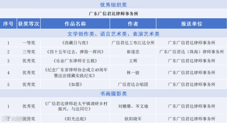 荣誉 | 广信君达在广东律协成立45周年文艺作品比赛中绽放异彩