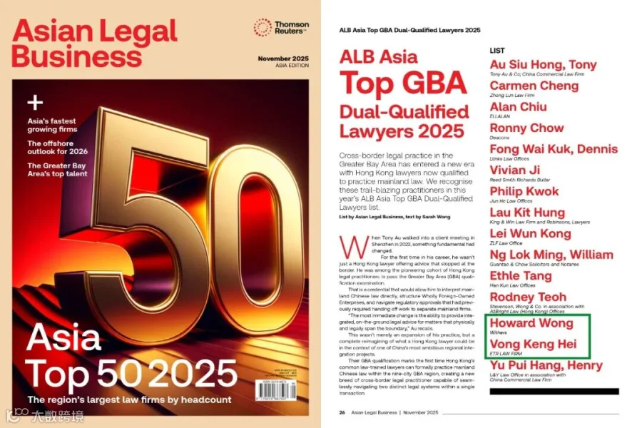 本所粤港澳大湾区律师黄景禧、黄思聪荣登ALB“粤港澳大湾区港澳律师执业菁英”榜单。