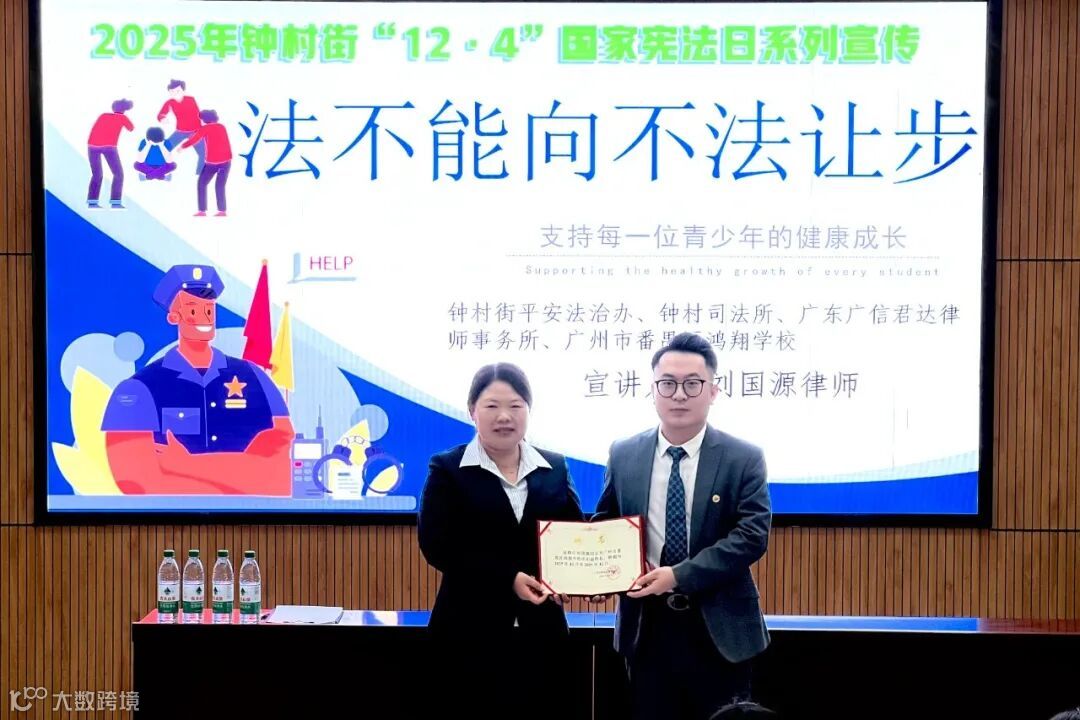 为加强宪法宣传教育,进一步提升全民法治素养,近日,广信君达律师事务所刘国源律师积极响应参加广州市番禺区钟村街宪法宣传周主题活动,先后为该街辖区鸿翔学校、毓贤学校开展“法不能向不法让步”专题讲座。