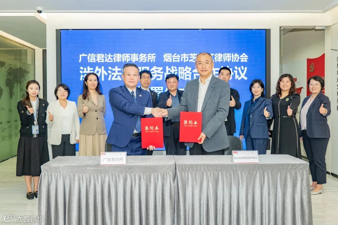 在双方代表见证下,烟台市芝罘区律师协会刘志祥会长、广信君达朱滔律师作为签约代表,共同签署《涉外法律服务战略合作协议》。