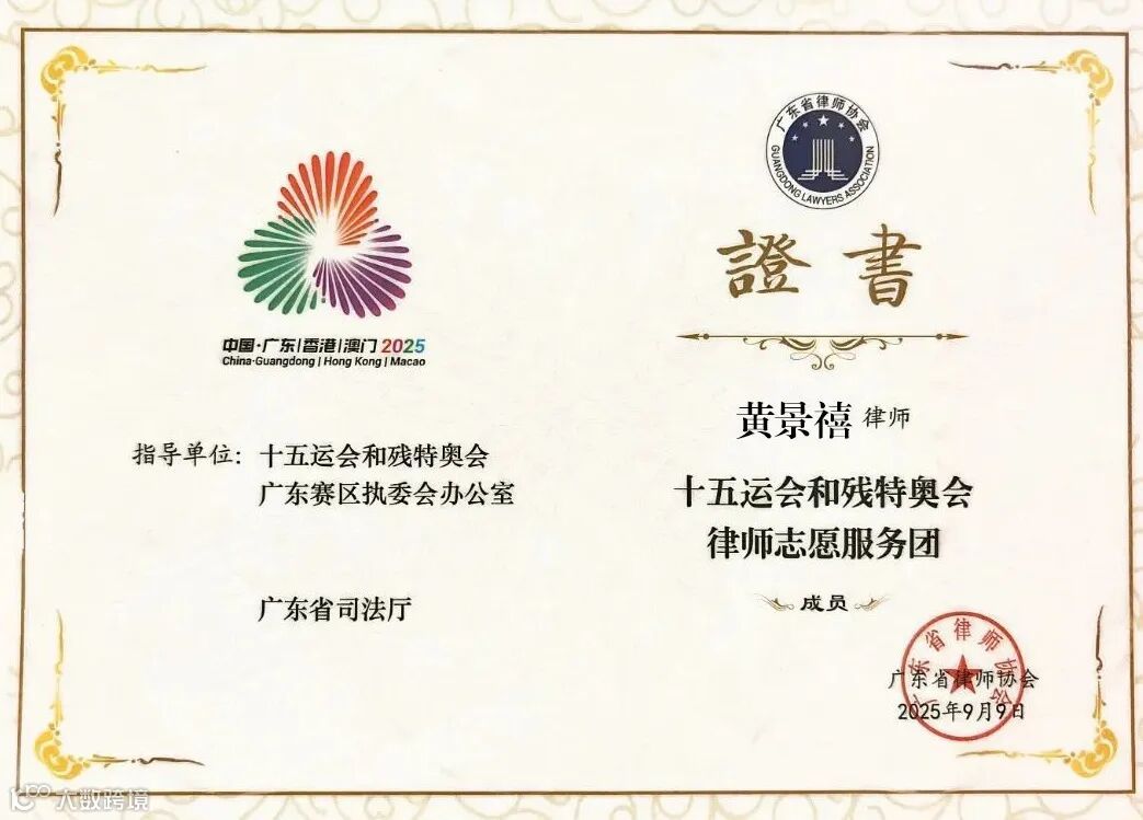 在服务粤港澳大湾区建设方面,广信君达已吸纳40名粤港澳大湾区律师,建立港澳律师服务部,推动三地规则衔接。黄景禧律师作为大湾区律师代表,曾参与“深化粤港澳大湾区法律服务交流与合作”巡回讲座,探讨企业出海风险防范与湾区法治协同。此次服务十五运会,广信君达将进一步发挥“一国两制三法域”优势,助力打造《广州仲裁委员会体育商事仲裁十条举措》等创新机制,推动建立国际化赛事争议解决标准。