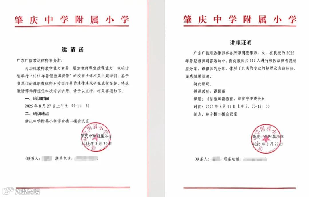 本次为肇庆中学附属小学开展法治培训,是广信君达践行社会责任、服务公共利益的一个生动缩影。我们将继续秉持“效率、信任、责任”的核心理念,充分发挥我们在法律服务领域的专业优势,坚定不移地助力中国义务教育领域的法治建设实现高质量发展,通过更多形式多样、内容扎实的公益法律服务,为广大中小学教师提升法律素养、规范教育教学行为提供强而有力的专业支持。