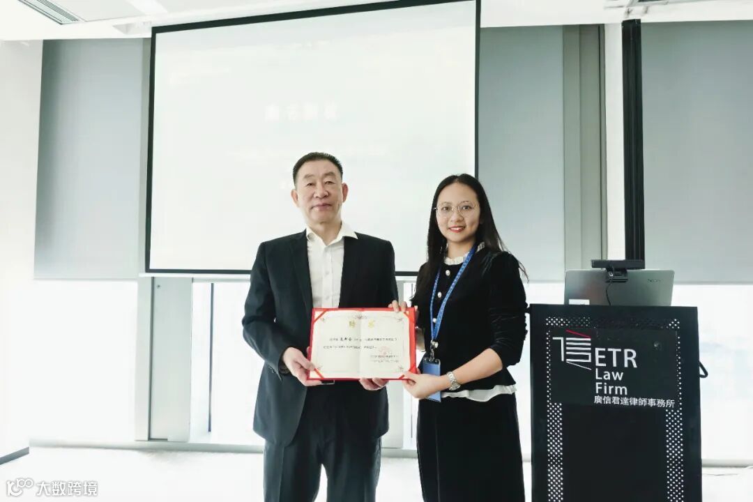 讲座伊始,林晓纯律师为高新会律师颁发劳动与社会保障部高级顾问聘书。