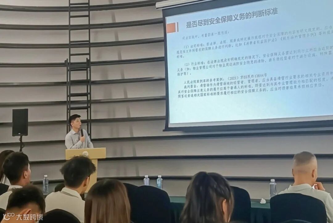 苏东海律师团队的梁广涛律师作“景区经营法律风险”专题分享,重点讲解了企业较为关注的“安全保障义务”及“涉不公平格式条款”问题。梁广涛律师结合最高人民法院入库案例、典型案例以及自身实务经验,生动阐述了公司在日常经营活动中需注意的问题,并为天人山水公司防范相关法律风险提供了具体建议。