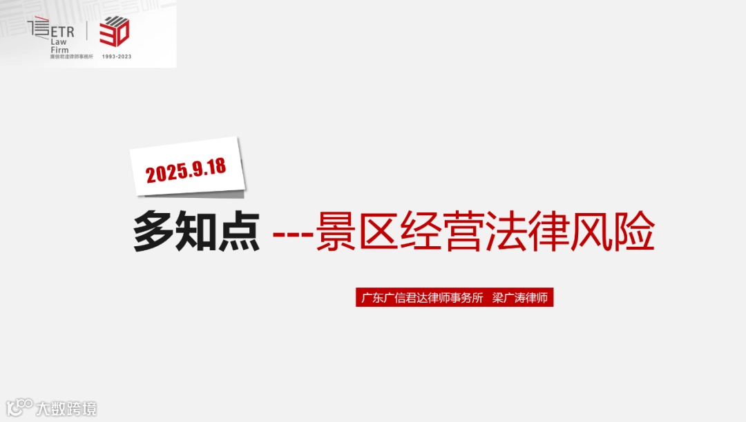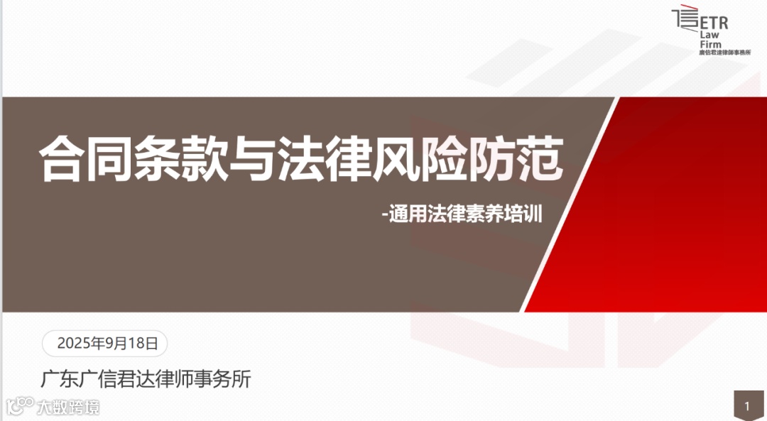 近日,为进一步强化合规意识,提升风险防范能力,广信君达律师事务所张小丽、梁广涛律师作为广州昊源集团有限公司法律顾问组成员,应邀为集团旗下的广东天人山水旅游管理有限公司(简称“天人山水公司”)分别开展“合同条款与法律风险防范”“景区经营法律风险”专题培训。
