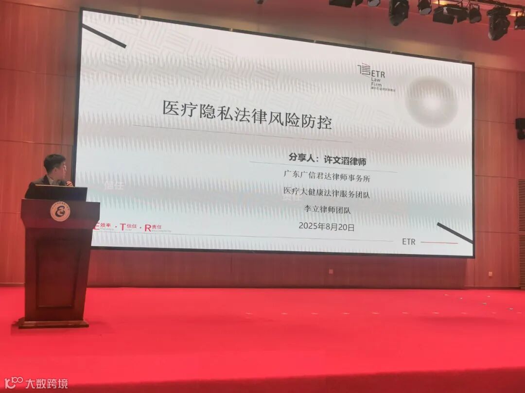 为强化医疗机构及医务人员的医疗隐私保护意识,有效防范法律风险,2025年8月20日,广州市律师协会生物医药与健康业务专业委员会委员、广信君达律师事务所合伙人、李立律师团队成员许文滔律师应邀为中山大学附属第八医院(深圳福田)(简称“中大八院”)开展“医疗隐私法律风险防控”专题讲座。医院医护人员、行政管理人员等相关人员参加培训,共同学习医疗隐私保护的法律要点与实践规范。