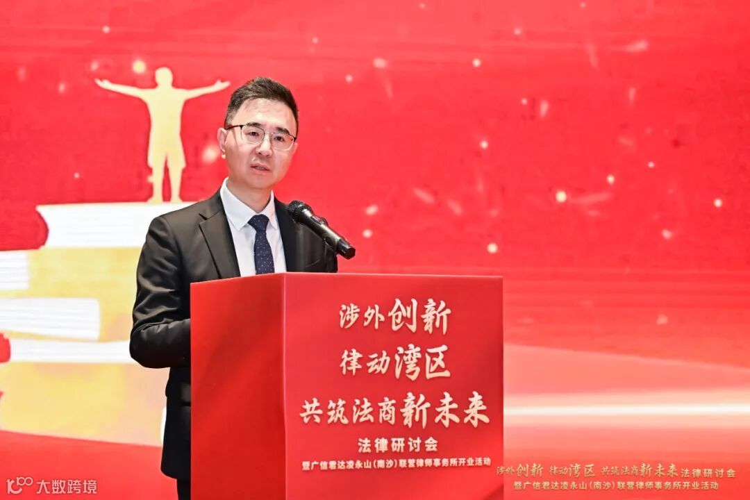 广信君达凌永山(南沙)联营律师事务所主任曾建新律师在致辞中,向各位嘉宾、同仁致以诚挚谢意。他表示,联营所对未来发展满怀坚定信心,将充分发挥南沙作为国家级新区、自贸试验区的政策红利与区位优势,为湾区企业提供“一站式”跨境法律解决方案,助力南沙提升国际法律服务能级。