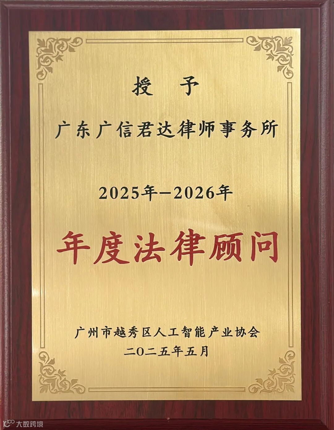 本次获聘为年度法律顾问,体现了广州市越秀区人工智能产业协会对广信君达专业能力的充分肯定与信任。未来,广信君达将秉持“效率、信任、责任”的核心理念,积极发挥专业优势,以优质、高效、专业的法律服务,助推人工智能产业高质量发展。