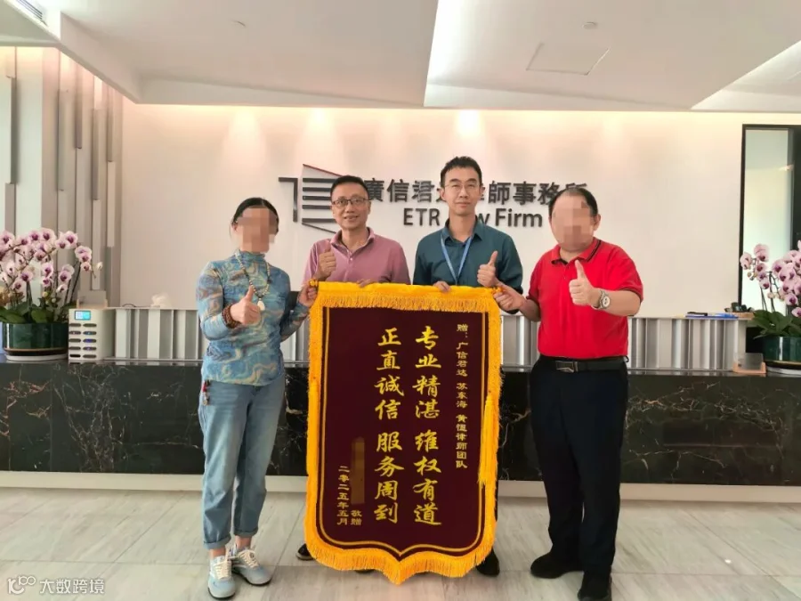 客户在赠旗时表示:“一审被驳回后,苏东海律师团队、黄恒律师团队用专业和坚持力挽狂澜,他们不仅专业精湛,更在每一个细节上全力以赴,感谢他们的付出!”